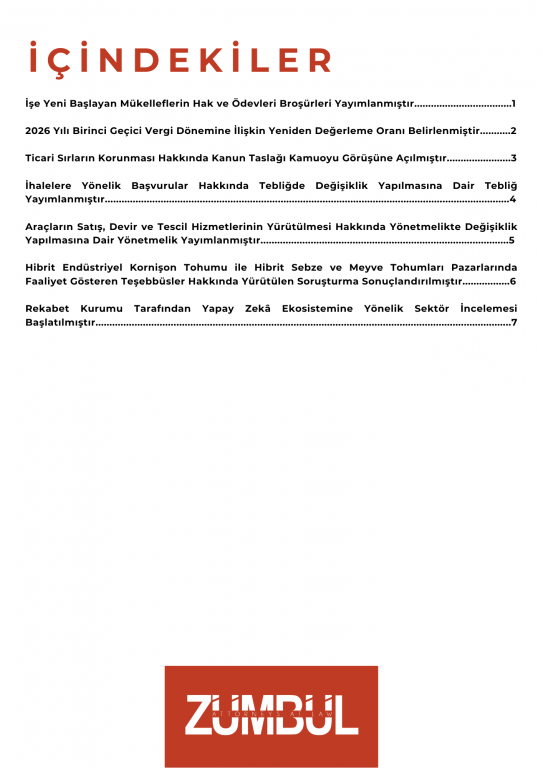 - 213 sayılı Vergi Usul Kanununun mükerrer 298 inci maddesinin (B) fıkrası uyarınca, 2026 yılı birinci geçici vergi döneminde uygulanacak yeniden değerleme oranı belirlenmiştir.