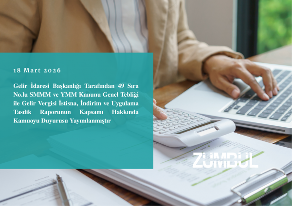 Gelir İdaresi Başkanlığı Tarafından 49 Sıra No.lu SMMM ve YMM Kanunu Genel Tebliği ile Gelir Vergisi İstisna, İndirim ve Uygulama Tasdik Raporunun Kapsamı Hakkında Kamuoyu Duyurusu Yayımlanmıştır