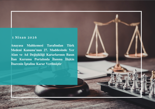 Anayasa Mahkemesi Tarafından Türk Medeni Kanunu’nun 27. Maddesinde Yer Alan ve Ad Değişikliği Kararlarının Basın İlan Kurumu Portalında İlanına İlişkin İbarenin İptaline Karar Verilmiştir