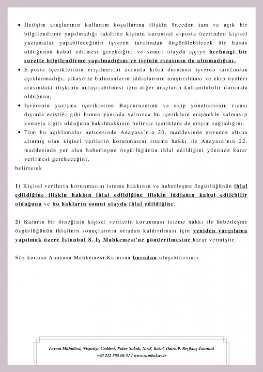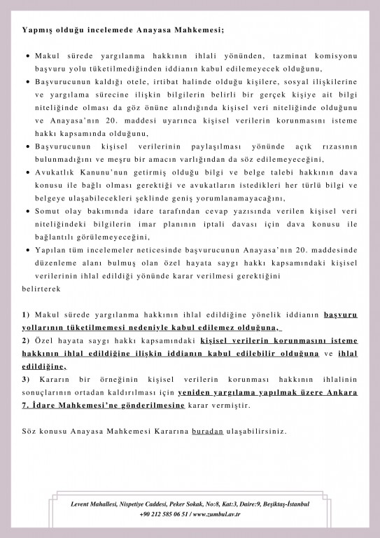 ANAYASA MAHKEMESİ’NDEN KİŞİSEL VERİLERİN KORUNMASINI İSTEME HAKKINA İLİŞKİN KARARLAR!