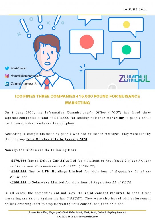 Privacy Blog Anasayfa Data&Privacy Blog ICO FINES THREE COMPANIES 415,000 POUND FOR NUISANCE MARKETING Geri ICO FINES THREE COMPANIES 415,000 POUND FOR NUISANCE MARKETING