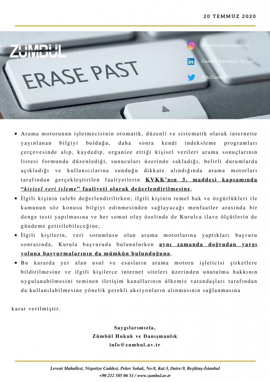 Privacy Blog Anasayfa Data&Privacy Blog KVKK'DAN UNUTULMA HAKKI KARARI! Geri KVKK'DAN UNUTULMA HAKKI KARARI!