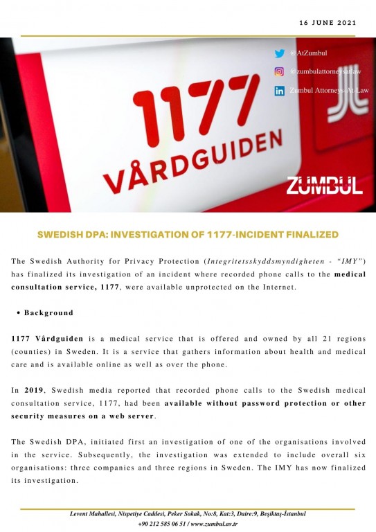 Privacy Blog Anasayfa Data&Privacy Blog SWEDISH DPA: INVESTIGATION OF 1177-INCIDENT FINALIZED Geri SWEDISH DPA: INVESTIGATION OF 1177-INCIDENT FINALIZED