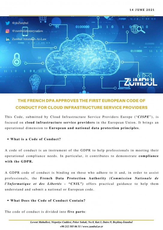 Privacy Blog Anasayfa Data&Privacy Blog THE FRENCH DPA APPROVES THE FIRST EUROPEAN CODE OF CONDUCT FOR CLOUD INFRASTRUCTURE SERVICE PROVIDERS Geri THE FRENCH DPA APPROVES THE FIRST EUROPEAN CODE OF CONDUCT FOR CLOUD INFRASTRUCTURE SERVICE PROVIDERS