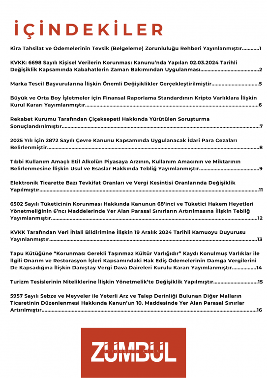 Ticaret Bakanlığı (“Bakanlık”) tarafından hazırlanan 6502 Sayılı Tüketicinin Korunması Hakkında Kanunun 68’inci ve Tüketici Hakem Heyetleri Yönetmeliğinin 6’ncı Maddelerinde Yer Alan Parasal Sınırların Artırılmasına İlişkin Tebliğ (“Tebliğ”) 20/12/2024 tarihli ve 32758 sayılı Resmi Gazete’de yayımlanmıştır.
