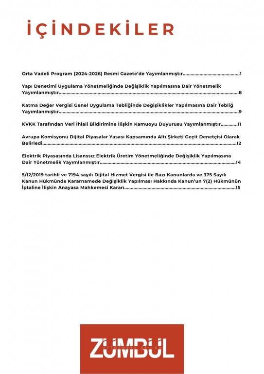 5/12/2019 tarihli ve 7194 sayılı Dijital Hizmet Vergisi ile Bazı Kanunlarda ve 375 Sayılı Kanun Hükmünde Kararnamede Değişiklik Yapılması Hakkında Kanun’un (“Kanun”) 7(2) hükmünün iptali için başvurulan soyut norm denetimine ilişkin 2020/11 esas numaralı ve 18/5/2023 tarihli Anayasa Mahkemesi (“Mahkeme”) kararı, 12 Eylül 2023 tarihli ve 32307 sayılı Resmi Gazete’de yayımlanmıştır.