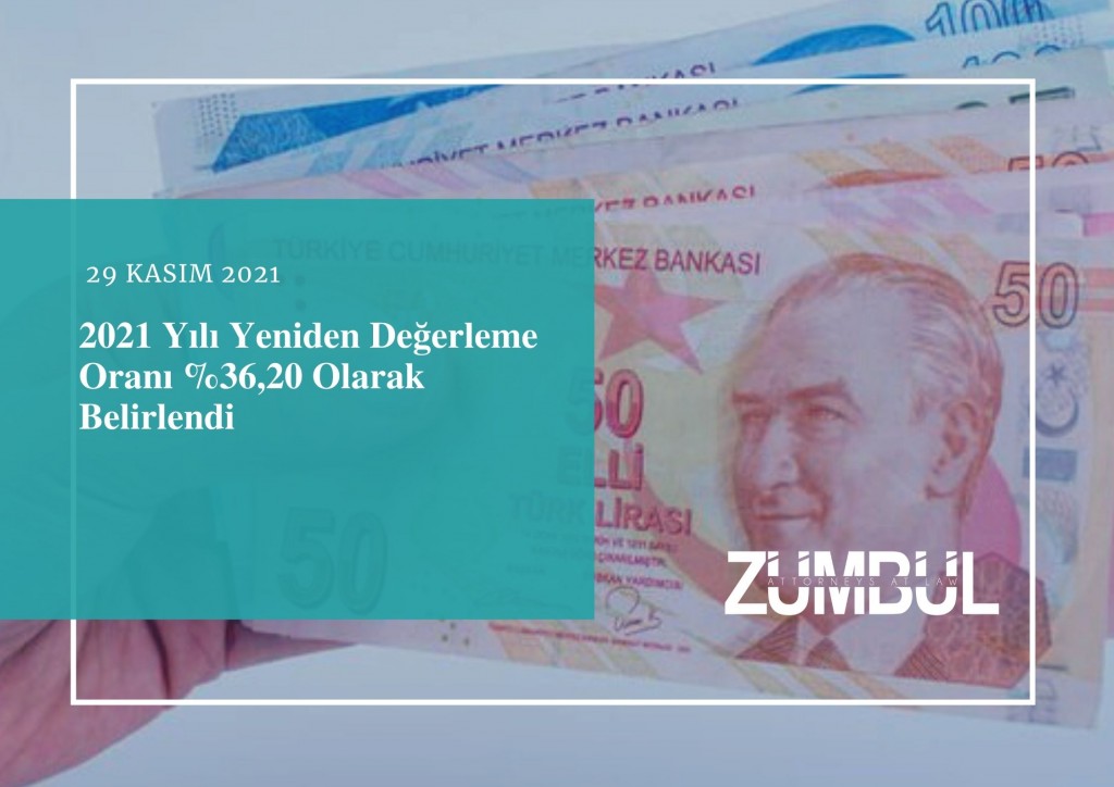 27 Kasım 2021 tarihli 31672 sayılı Resmi Gazete’de yayımlanan Vergi Usul Kanunu Genel Tebliği uyarınca yeniden değerleme oranı 2021 yılı için % 36,20 (otuz altı virgül yirmi) olarak tespit edilmiştir. Bu oran, aynı zamanda 2021 yılına ait son geçici vergi dönemi için de uygulanacaktır.