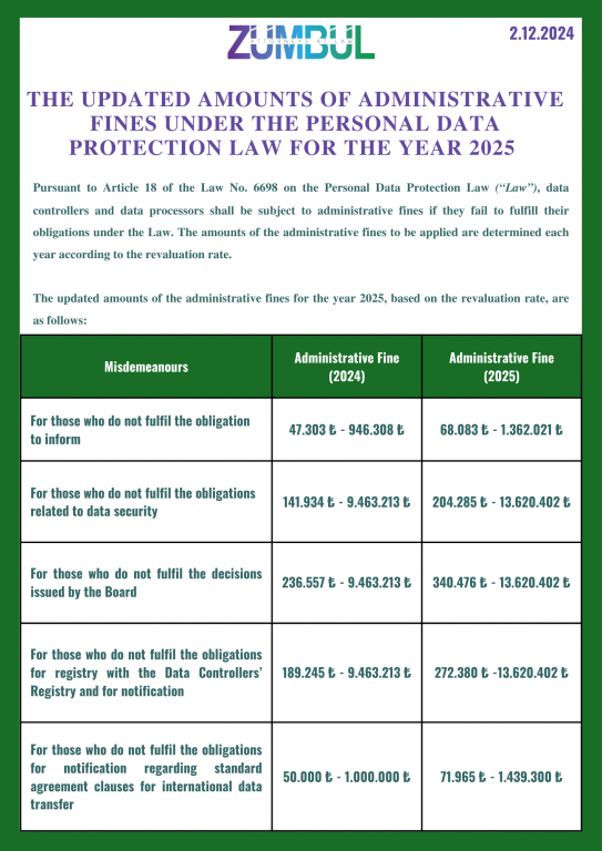 For the purposes of Article 18 of the Law No. 6698 on the Personal Data Protection Law;