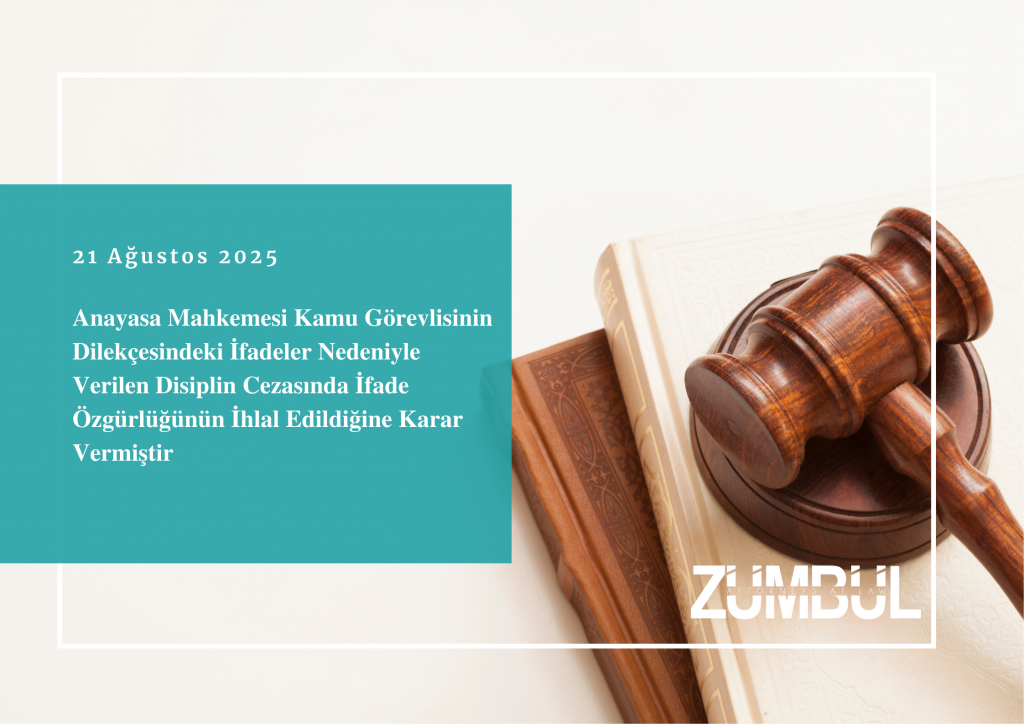 Anayasa Mahkemesi Başkanlığı (“AYM”) tarafından, kamu görevlisinin idareye verdiği dilekçede kullandığı ifadeler nedeniyle disiplin cezası ile cezalandırılmasının ifade özgürlüğünü ihlal ettiğine yönelik 2021/8194 başvuru numaralı ve 18/12/2024 tarihli “Ömer Soyutemiz Başvurusu” isimli karar (“Karar”) 21/08/2025 tarihli ve 32993 sayılı Resmî Gazete’de yayımlanmıştır.