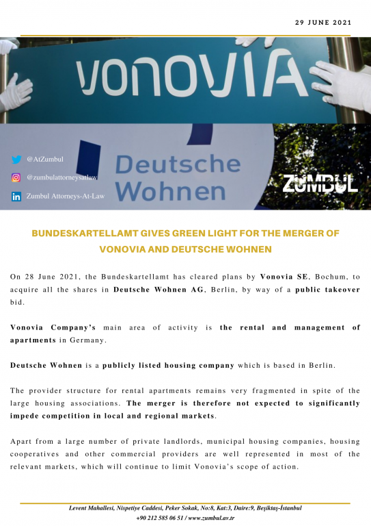 Duyurular Anasayfa Yayınlar&Duyurular Duyurular BUNDESKARTELLAMT GIVES GREEN LIGHT FOR THE MERGER OF VONOVIA AND DEUTSCHE WOHNEN Geri BUNDESKARTELLAMT GIVES GREEN LIGHT FOR THE MERGER OF VONOVIA AND DEUTSCHE WOHNEN