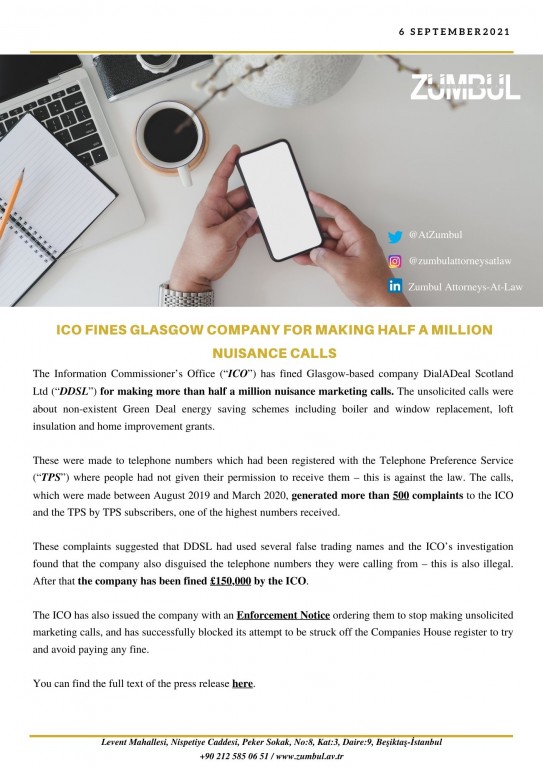 Duyurular Anasayfa Yayınlar&Duyurular Duyurular ICO FINES GLASGOW COMPANY FOR MAKING HALF A MILLION NUISANCE CALLS Geri ICO FINES GLASGOW COMPANY FOR MAKING HALF A MILLION NUISANCE CALLS