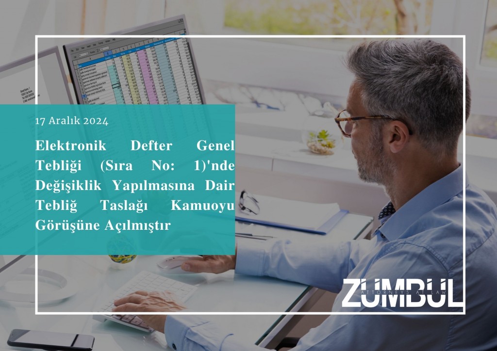 Hazine ve Maliye Bakanlığı ile Ticaret Bakanlığı (“Bakanlık”) tarafından hazırlanan, Elektronik Defter Genel Tebliği’nde (Sıra No: 1) Değişiklik Yapılmasına Dair Tebliğ Taslağı (“Taslak”) 13/12/2024 tarihinde Gelir İdaresi Başkanlığı’nın (“GİB”) resmi internet sitesinde yayınlanmıştır.