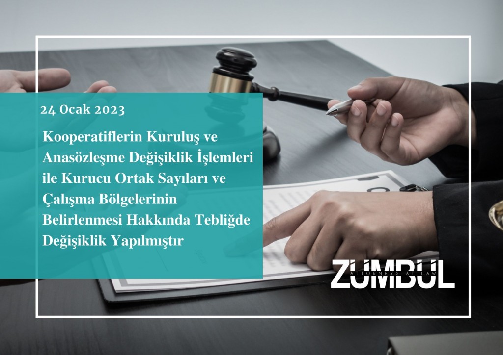Kooperatiflerin Kuruluş ve Anasözleşme Değişiklik İşlemleri ile Kurucu Ortak Sayıları ve Çalışma Bölgelerinin Belirlenmesi Hakkında Tebliğde Değişiklik Yapılmasına Dair Tebliğ (“Tebliğ”), 24 Ocak 2023 tarihli ve 32083 sayılı Resmi Gazete’de yayımlanmıştır.