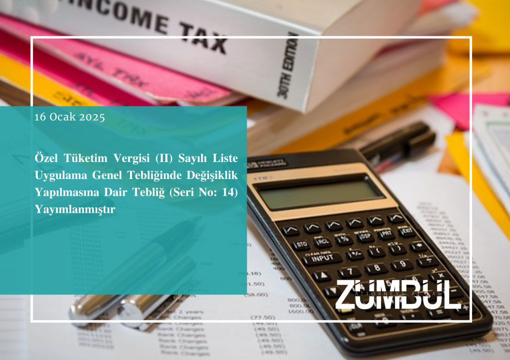 Hazine ve Maliye Bakanlığı Gelir İdaresi Başkanlığı (“GİB”) tarafından hazırlanan Özel Tüketim Vergisi (II) Sayılı Liste Uygulama Genel Tebliğinde Değişiklik Yapılmasına Dair Tebliğ (Seri No: 14) (“Tebliğ”) 15.01.2025 tarihli ve 32783 sayılı Resmî Gazete’de yayımlanmıştır.