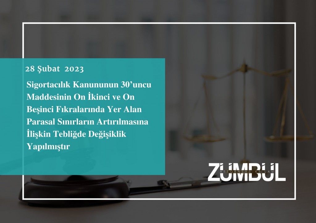 Sigortacılık Kanununun 30’uncu Maddesinin On İkinci ve On Beşinci Fıkralarında Yer Alan Parasal Sınırların Artırılmasına İlişkin Tebliğde Değişiklik Yapılmasına Dair Tebliğ (“Tebliğ”), 28 Şubat 2023 tarihli ve 32118 sayılı Resmi Gazete’de yayımlanmıştır.
