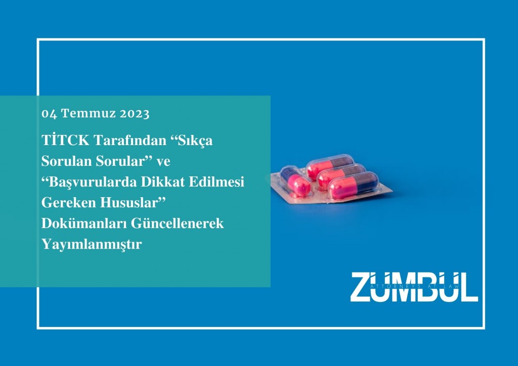 Türkiye İlaç ve Tıbbi Cihaz Kurumu (“TİTCK”) İlaç Ruhsatlandırma Dairesi Başkanlığınca yürütülen ruhsatlandırma süreçlerinin ve ruhsatlandırılmış ürünlerde yürütülen süreçlerin daha verimli hale getirilmesini sağlamak amacıyla; güncel mevzuat ve uygulamalar doğrultusunda “Sıkça Sorulan Sorular” ve “Başvurularda Dikkat Edilmesi Gereken Hususlar” dokümanları, 3 Temmuz 2023 tarihinde, güncellenerek yayımlanmıştır.
