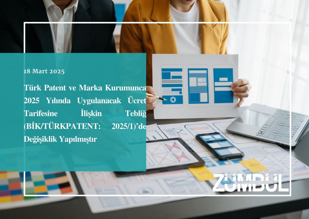 Türk Patent ve Marka Kurumunca 2025 Yılında Uygulanacak Ücret Tarifesine İlişkin Tebliğ (BİK/TÜRKPATENT: 2025/1)’de Değişiklik Yapılmıştır