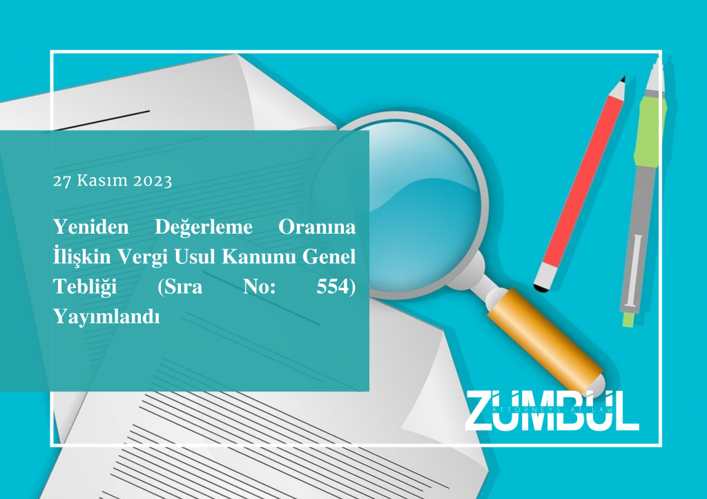 Hazine ve Maliye Bakanlığı (“Bakanlık”) Gelir İdaresi Başkanlığının (“Başkanlık”), 25.11.2023 tarihli ve 32380 sayılı Resmi Gazete’de yayımlanan Vergi Usul Kanunu Genel Tebliğine (Sıra No: 554) (“Tebliğ”) göre 213 sayılı Vergi Usul Kanununun (“Kanun”) mükerrer 298 inci maddesinin (B) fıkrasında yer alan ve 2022 yılı için 24/11/2022 tarihli ve 32023 sayılı Resmî Gazete’de yayımlanan Vergi Usul Kanunu Genel Tebliği (Sıra No: 542) ile % 122,93 (yüz yirmi iki virgül doksan üç) olarak tespit edilen yeniden değerleme oranı 2023 yılı için % 58,46 (elli sekiz virgül kırk altı) olarak tespit edilmiştir.